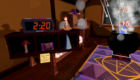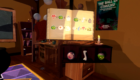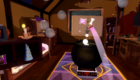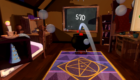 In order to make sure the menu read as a menu, I had large text above each object displaying their function. I also tried to draw the player’s focus to these items by dimming the room while the player is in the menu and putting spotlights above all interactable menu items. Having the menu reuse the main gameplay scene also meant we could start gameplay immediately after the player selects play, without having to transition. In order to show players what combinations of ingredients made what potions, I had a floating book on the player’s right side showing potion recipes.